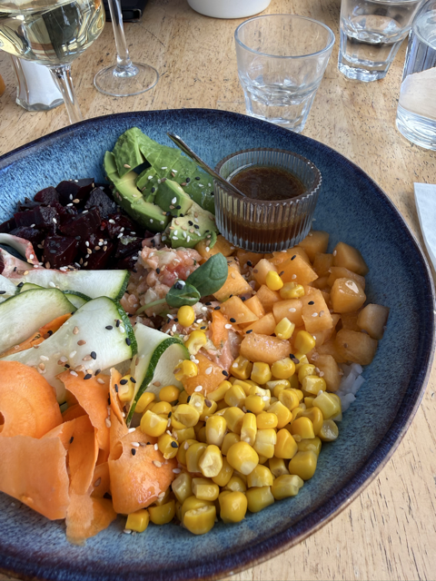 今回のフランス旅行で気づいたのが、あちこちのカフェでサラダのメニューの中にポケボール(ハワイ風の丼もの)があったこと。友人を家に招いてちらし寿司を作ると”ライスサラダ“と言って、喜ばれたことがあったので、ここでもサラダ扱いなんだぁ、と思ったりもして。