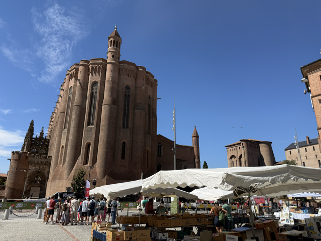 今日は風光明媚なドルドーニュ地方のどこかで泊まる目処をつけて、お昼休憩は中間辺りにあるアルビ(Albi)という街に目をつけました。