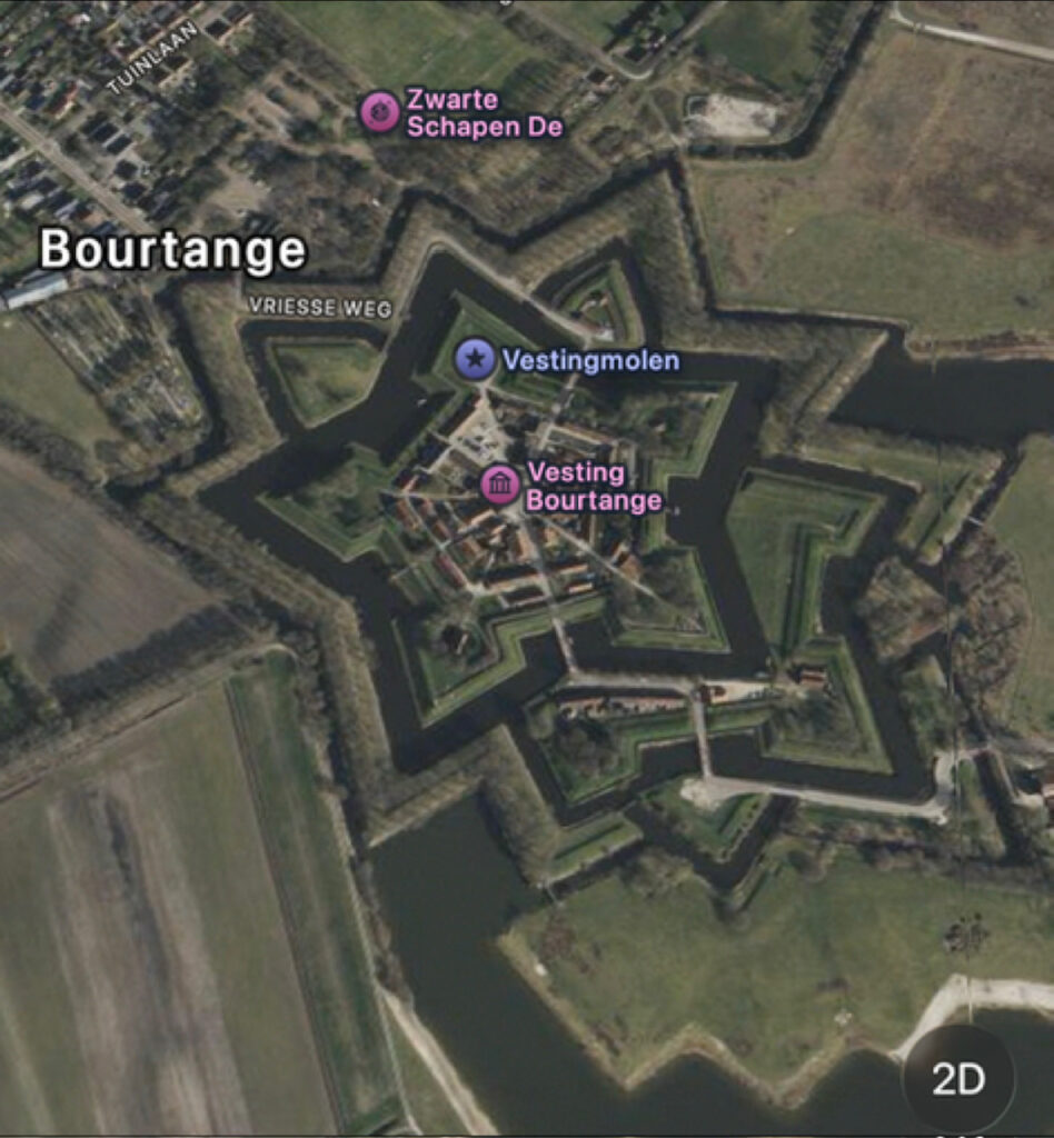 あちこち検索してみる中で、どうやらオランダで一番完全に整備され残された要塞都市は北東部のブールタング(Bourtange)のようです。残念ながら訪れたことはないのですが、写真で見るだけでもその美しい造形美にうっとりしてしまいます。
